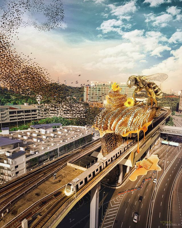 Humans aren’t the only life forms in the ecosystem, YONGL reminds us of the free birds and busy bees that live among us in the cities but work in their offices of nature. YONGL depicts a concrete jungle that is home to the same creatures that live in a real one.