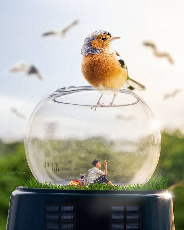 Whether it’s a corn-fusing perspective that tells a story of nature being so high in stature that it looks down upon our city’s skyscrapers, a fusion of the old and the new, a conceptualization of insects as workers, or a metaphor for how we’re quarantined in a bubble, YONGL can convey the message via photography.