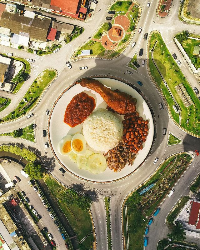 An ‘O’ is constructed using a round plate of Malaysia’s national dish atop one of Malaysia’s busiest roundabouts in the capital city of Kuala Lumpur. Nasi Lemak is an iconic Malaysian breakfast that is integral to the lifestyle of most, if not all, Malaysians and it is one that is eaten and enjoyed by people of different races who have different traditional foods.