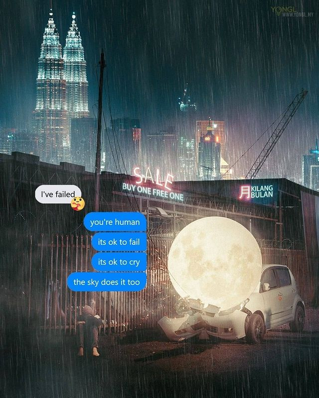 “Sometimes you find yourself in the middle of nowhere; and sometimes in the middle of nowhere, you find yourself”. YONGL portrays the journey of trying and failing — and of trying again. He reminds us that it is okay to fail because failure is part of the process of succeeding. In the face of our failures and in the midst of the darkness, the moon shines its light to remind us that there is hope so long that we keep trying without giving up.