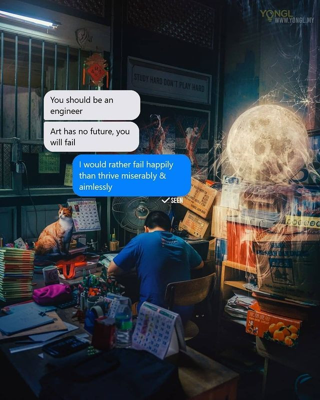 YONGL created this series to inspire young talents in Malaysia to pursue their dreams despite the long and difficult path they must take; even if it is the road less travelled by. “Every successful person has a painful story and every painful story has a successful end”. YONGL had undergone this journey himself when he was a beginner in the world of creative arts and he hopes that his journey will inspire others to strive until they can fulfil their definition of success.