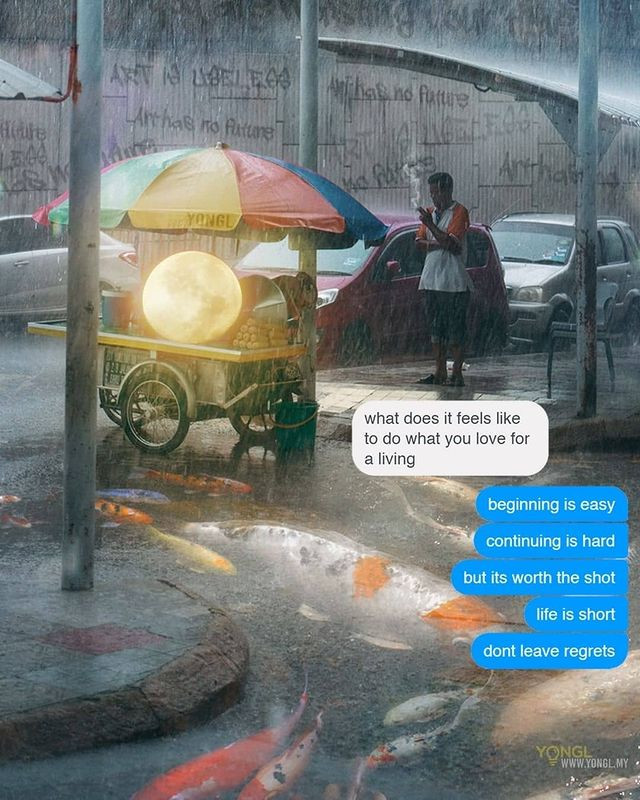 YONGL continues to create and inspire Malaysians by depicting the bits and pieces of their everyday life against a backdrop of surrealism. Check out feature stories about YONGL on Free Malaysia Today, the Sun Daily and World of Buzz. Stay updated with YONGL’s latest works on his Instagram and Facebook.