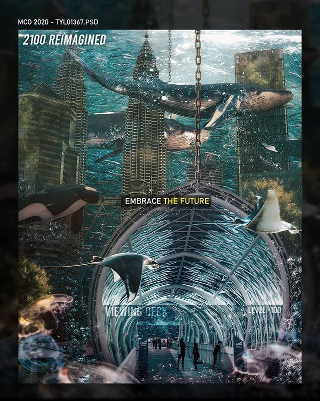 YONGL reimagines the Saloma Bridge and the Kuala Lumpur City Centre to be submerged in a futuristic underwater metropolis as in 2100. What’s new in the present will become the old in the future, YONGL tells us to embrace all possibilities that the future holds for us.
