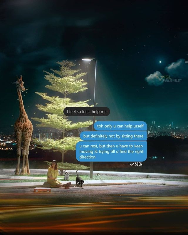There are times when we may feel lost but we must not dwell in a state of hopelessness. YONGL tells us that we should rest to recuperate, but we must not give into helplessness by refusing to help ourselves and our situations when times are tough. Rather, we must continue with our journey of trying until we have achieved the goals we set out to accomplish.