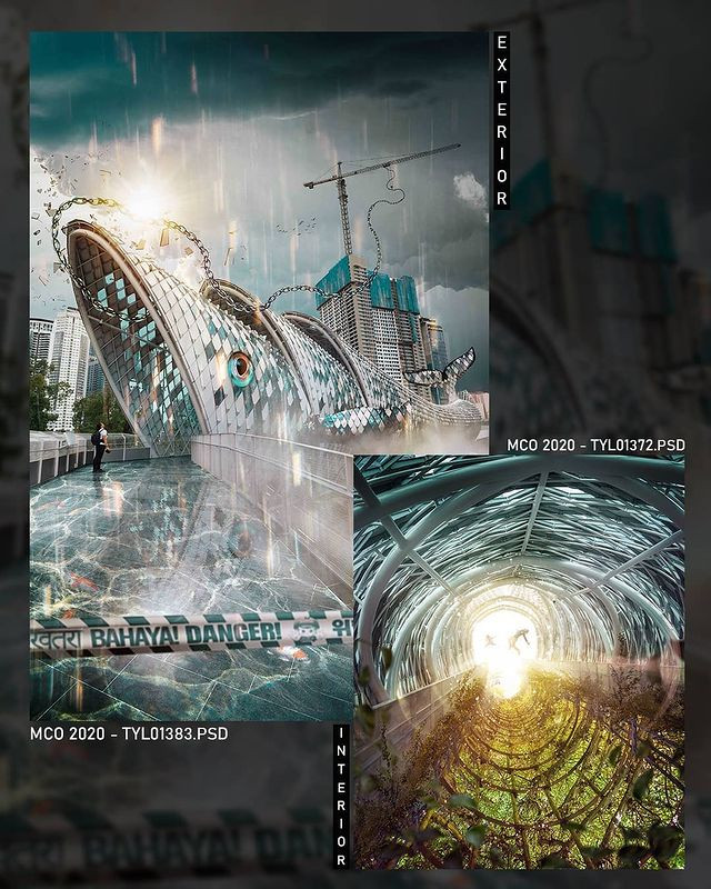 YONGL reimagines the Saloma Bridge and the Kuala Lumpur City Centre to be submerged in a futuristic underwater metropolis as in 2100. What’s new in the present will become the old in the future, YONGL tells us to embrace all possibilities that the future holds for us.